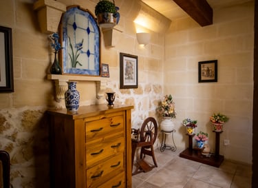 The farmhouse is just 7 minutes from the beautiful Ramla Bay, one of the most famous and beloved beaches in the Maltese Islands. Within walking distance, you will also find Xagħra’s town center, the Ġgantija Temples, shops, and local restaurants.