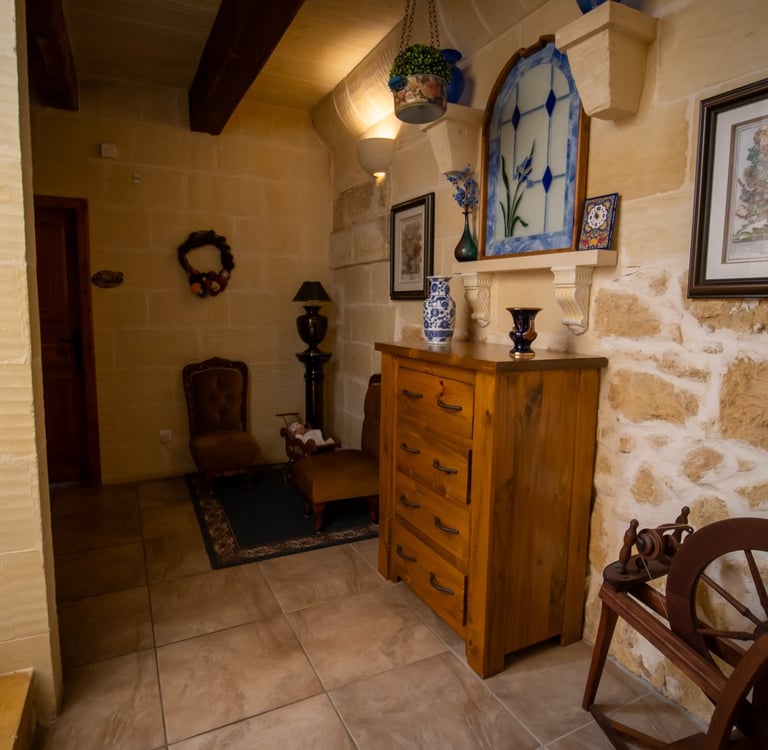 The farmhouse is just 7 minutes from the beautiful Ramla Bay, one of the most famous and beloved beaches in the Maltese Islands. Within walking distance, you will also find Xagħra’s town center, the Ġgantija Temples, shops, and local restaurants.